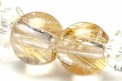 水晶の中に、ルチル(ラテン語で赤を意味する)の針状の結晶が